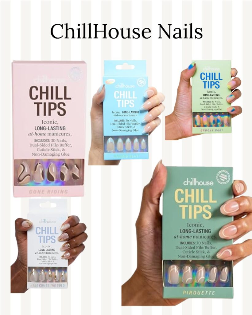 Okay friend, if you haven’t tried Chill Tips (Chillhouse nails) yet, they are such a vibe and a little different from the usual press-ons in the best way. They feel very trendy and artsy, like cool-girl, editorial nails you’d see on Instagram or in a boutique salon. They’re designed to be super easy to apply, customizable to your nail shape, and they can last up to a couple of weeks if you do your prep right. What I really love about them is the designs. They’re not just basic colors, they’re fun, creative, and a little bold without being too much. If you want nails that feel unique and a little more “fashion girl” instead of just everyday simple, these are such a fun option to switch things up.