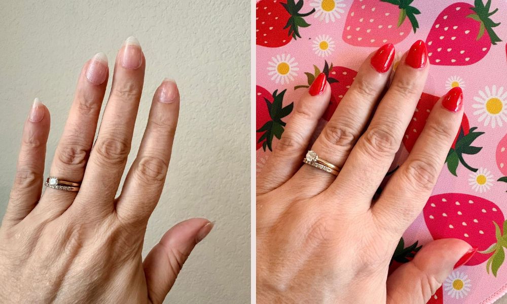 After that, try to avoid water for at least an hour or two if you can, because water too soon is the fastest way to ruin your hard work. And if you really want them to last, wear gloves when you’re doing dishes or cleaning. Basically, treat them a little gently and they’ll last you so much longer. Once you get your routine down, they can honestly look good for over a week, sometimes even longer.