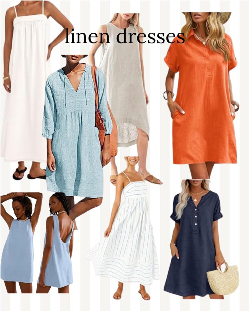 If there is one piece that screams European summer, it is a linen dress. A simple midi or knee length dress in white, beige, olive, or soft blue just works every single time.