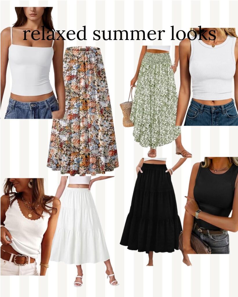 There is something so feminine about a flowy midi skirt paired with a simple fitted tank top. This combo shows up everywhere in European summer style.