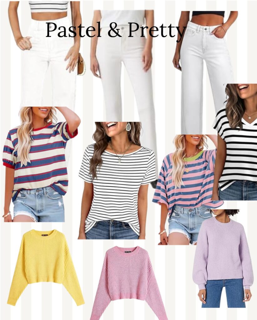 A striped tee paired with white or cream pants is clean, fresh, and perfect for summer.