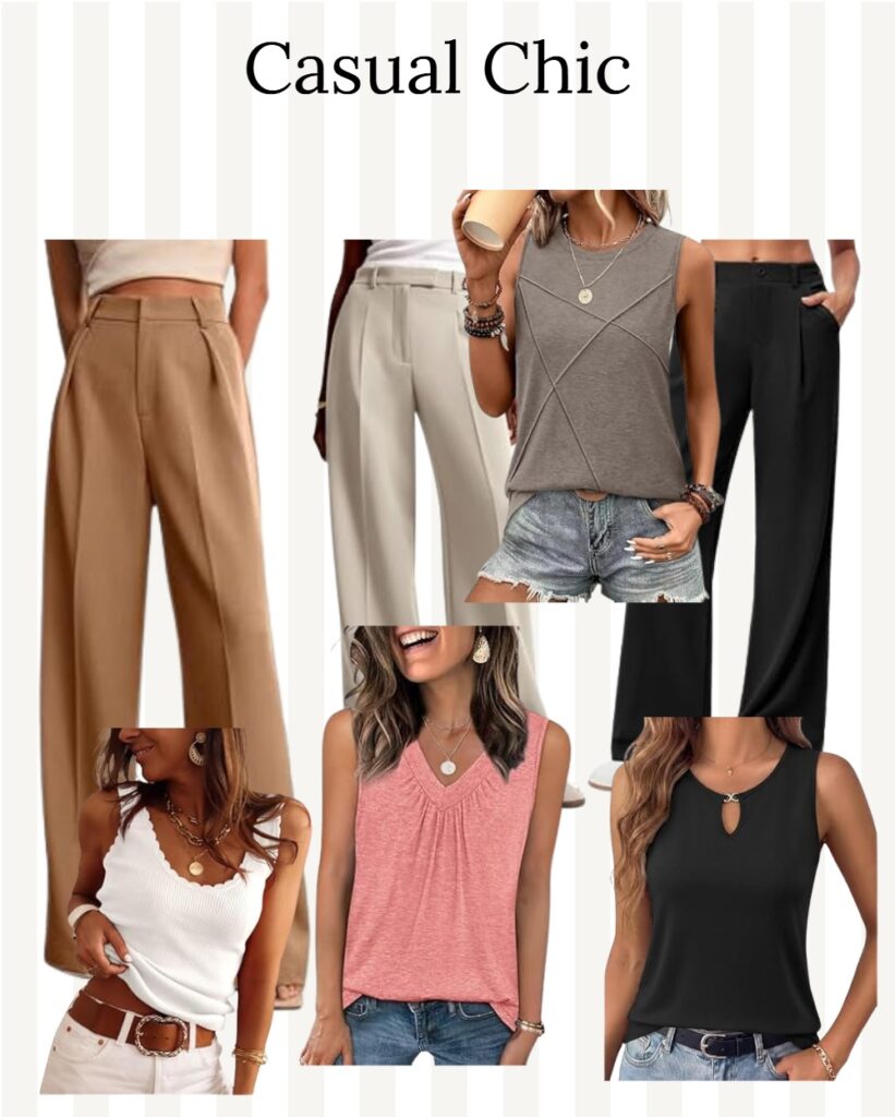 Choose lightweight trousers in linen or a breathable fabric and pair them with a fitted tank or sleeveless top.