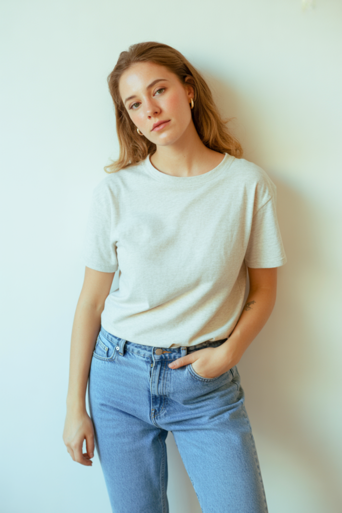 A classic white or neutral tee tucked into straight leg jeans is timeless. Add a leather belt, sandals, and a structured bag, and it instantly feels elevated.