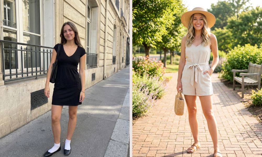 Before we get into outfit ideas, it helps to understand the overall feel. European summer style leans into quality over quantity. You will notice fewer loud prints and more neutral tones, breathable fabrics, and pieces that can mix and match easily.
