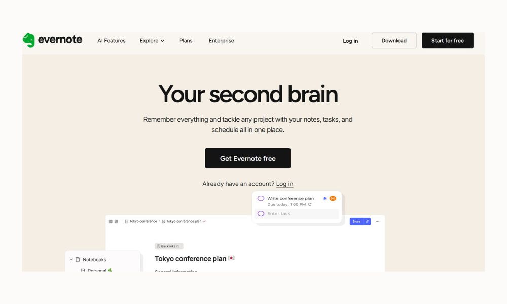 Evernote is a long-time favorite for organizing notes, ideas, and reference material. Professionals often use it to store meeting notes, research, articles, and project ideas in one searchable place. Its tagging system makes information easy to retrieve later. It’s especially helpful if your job involves writing, planning, or information management.