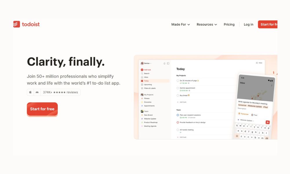 Todoist is a clean, intuitive task manager that works well for professionals who want structure without complexity. You can organize tasks by project, priority, and due date, and it syncs seamlessly across devices. It’s great for keeping daily work tasks visible and manageable. Many people love it for its balance of simplicity and power.